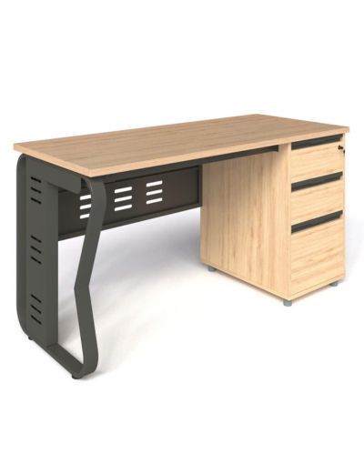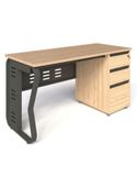 Trang bị hộc gỗ 3 ngăn kéo, tay nắm bằng thép tấm gấp hiện đại, chắc chắn. Thiết kế giúp dễ dàng lưu trữ hồ sơ, tài liệu và vật dụng cá nhân.