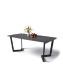 Chất liệu | Mặt đá ceramic dày 12mm có độ cứng và khả năng chịu lực cao, giúp chống lại va đập, trầy xước và nhiệt độ cao, chống ẩm, chống ố bẩn. Chân sắt tạo hình chân chữ V. Khung đỡ mặt bàn bằng thép hộp 30x60, sơn đen sần hoặc kem. |