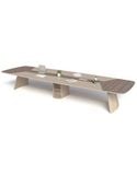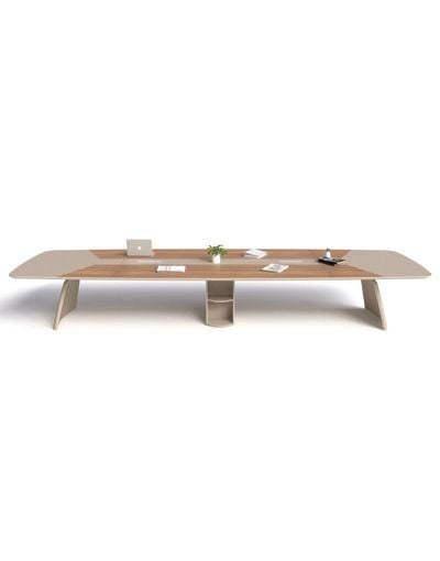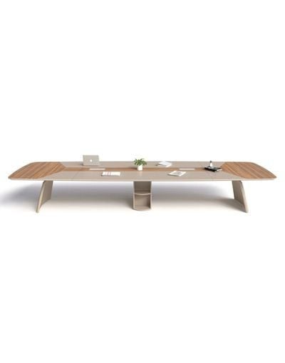 Bàn họp 262BH48 thuộc dòng Bàn họp, chân bằng thép hộp dày 40mm tạo hình cánh quạt sơn tĩnh điện màu đen/ vàng cát, có hộc tủ gỗ ở giữa làm chân bàn, thanh giằng thép hộp. Mặt bàn gỗ MFC 2 lớp, lớp trên dày 17mm, lớp dưới dày 17mm cạnh vát chéo kèm 2 nắp nhôm lật 2 chiều..