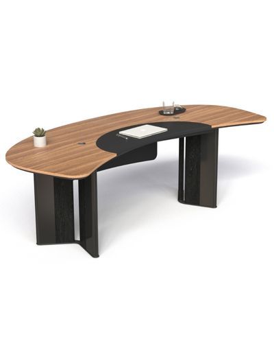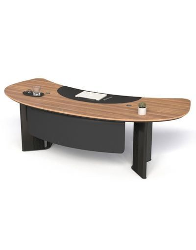 Bàn giám đốc 261BLD24 thuộc dòng bàn lãnh đạo , mặt bàn gỗ MFC 2 lớp, lớp trên dày 17mm có ghép tấm da ở giữa, lớp dưới dày 17mm cạnh vát chéo