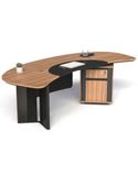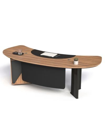 Bàn giám đốc 261BLD24H6 thuộc dòng Bàn lãnh đạo có 1 hộc, mặt bàn gỗ MFC 2 lớp, lớp trên dày 17mm có ghép tấm da ở giữa, lớp dưới dày 17mm cạnh vát chéo