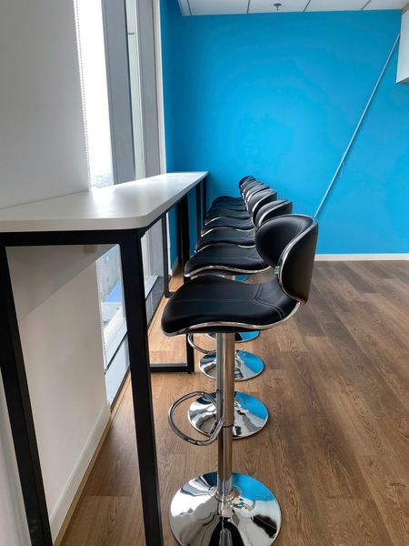 Chất liệu | Ghế bar lưng eo bọc da PU, nẹp nhựa viền mạ trắng, chân đế mạ. Bọc da khác màu đen + 50.000đ |