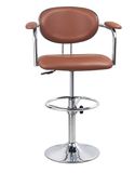 Chất liệu | Ghế bar bọc dai PVC, tay sắt mạ, ốp tay mút bọc da PVC,tựa lưng viền nẹp mạ,chân đế mạ Ø450. |