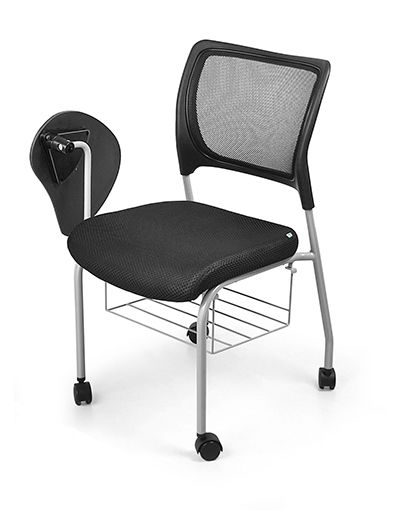 Chất liệu | Ghế khung thép sơn tĩnh điện, lưng ghế nhựa bọc vải lưới. Có mặt bàn viết, khay để sách và bánh xe. Đệm ghế có thể bọc vải nỉ hoặc da PU + 30.000đ. |